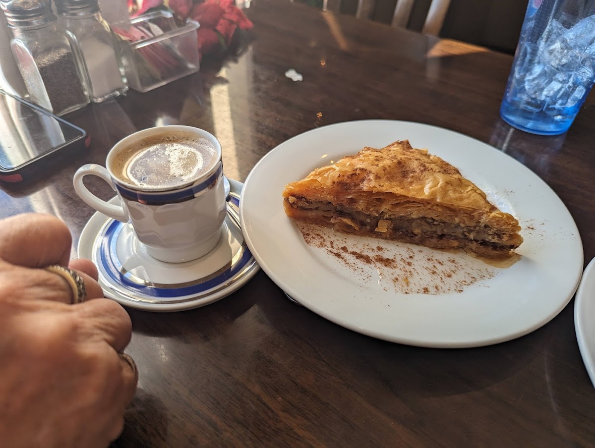 For those looking to enjoy something light yet full of flavor, the Greek Salad with Chicken Souvlaki is a must-try. The crisp vegetables paired with marinated grilled chicken souvlaki and topped with a refreshing vinaigrette create the perfect balance of textures and flavors. And, of course, no meal at Jimmy's is complete without dessert. The Baklava here is rich, flaky, and drizzled with honey syrup, making it the perfect sweet ending to your meal.